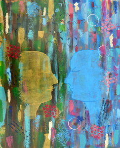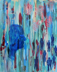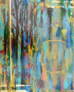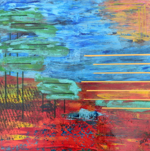 Schilderij van acrylverf op canvas, gecombineerd met structuur.