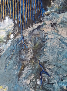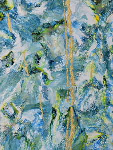 Liquid art in combinatie met structuur en bladgoud, voorzien van een baklijst.